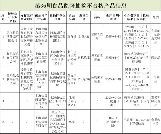 上海市市场监管局引见,2025年第36期省级食物平安抽检消息发布。本次抽检消息涉及7大类食物,包罗蛋成品、肉成品、食用农产物、食用油、油脂及其成品、薯类和膨化食物和糖果成品。