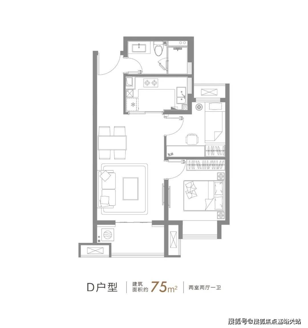 约75㎡2房户型,单套总价大概不到两百万起,且拆修交付,很是欣喜!