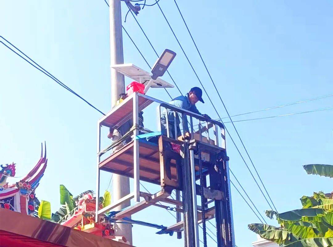 走进安拆现场,玉兰村村道上处处是忙碌身影。施工人员分工协做、杂乱无章,有的开着叉车迟缓将人员送至安拆处,有的拿着电钻固定基座,有的专注调试太阳能板取灯具的角度。阳光照正在簇新的光伏板上熠熠生辉,此次安拆的太阳能灯,凭仗环保节能的劣势,无需复杂电缆铺设,依托太阳能就能实现从动亮灯。灯安拆完毕后,不只完全改善了村平易近夜间出行前提,更点亮了村容村貌,为玉兰村的村落复兴之添加了一抹敞亮的色彩。